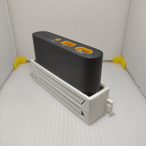 Enkelt väggfäste för en HTC VIVE Link Box. Upphängningen ger fri tillgång till alla entréer.