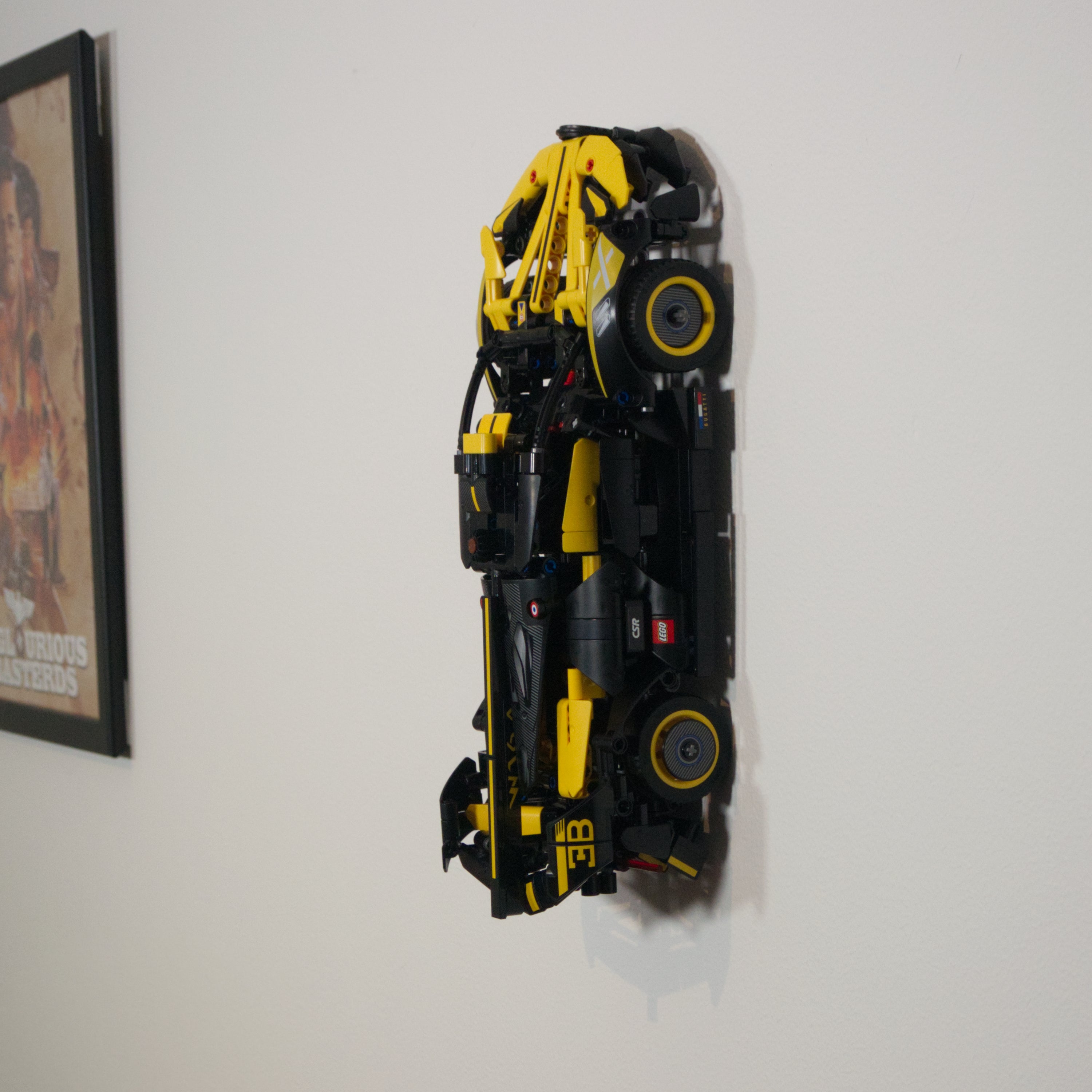 Fremvis din Technic Bugatti Bolide 42151 sikkert på væggen med dette funktionelle beslag. Holderen muliggør både vinklet placering ud fra væggen til højre eller venstre samt en flad lodret montering. Installationen er enkel og kræver blot en enkelt skrue for stabil ophængning.