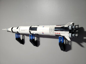 Väggmonterat stativ för Lego Saturn V modell. Den har funktioner för att hålla Lego-axlar som ansluter till det blå stativet som följer med modellen. Perfekt för att visa din Lego Saturn V-modell på väggen.