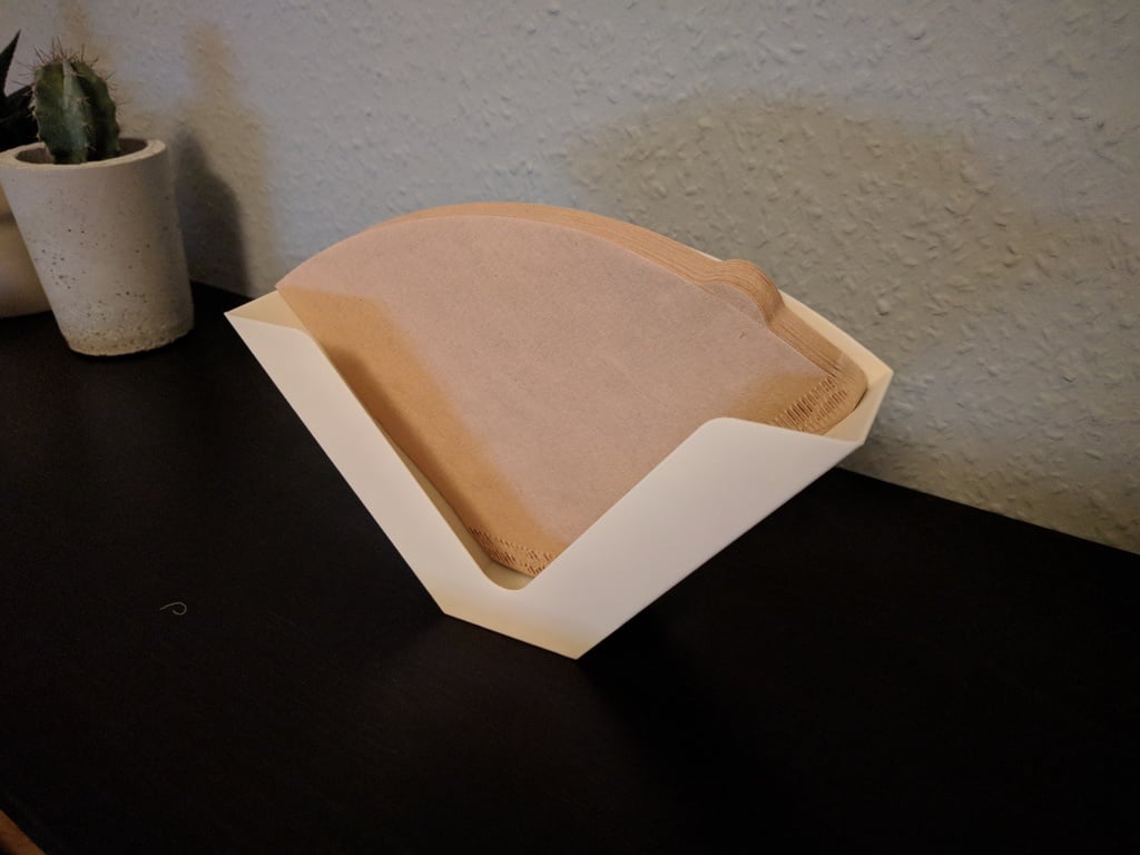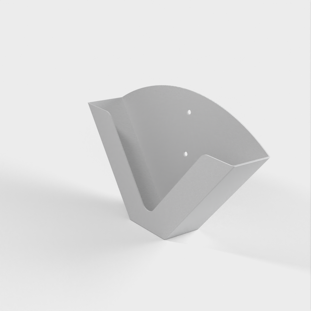 Detta är en hållare för kaffefilter som kan skruvas fast på insidan av ett skåp eller på väggen. Det gör det enkelt att hålla koll på dina kaffefilter och gör dem lättillgängliga när du ska koka kaffe.