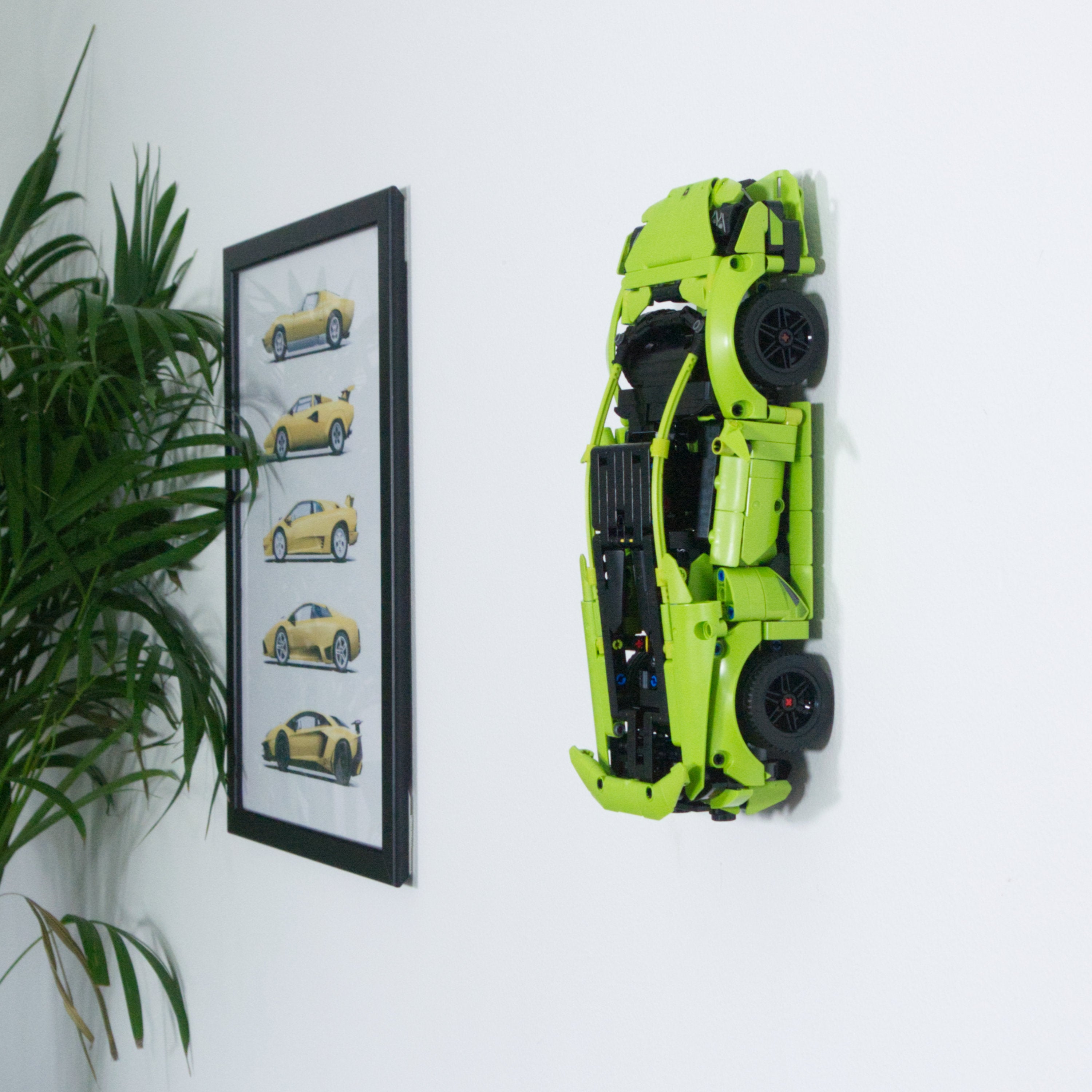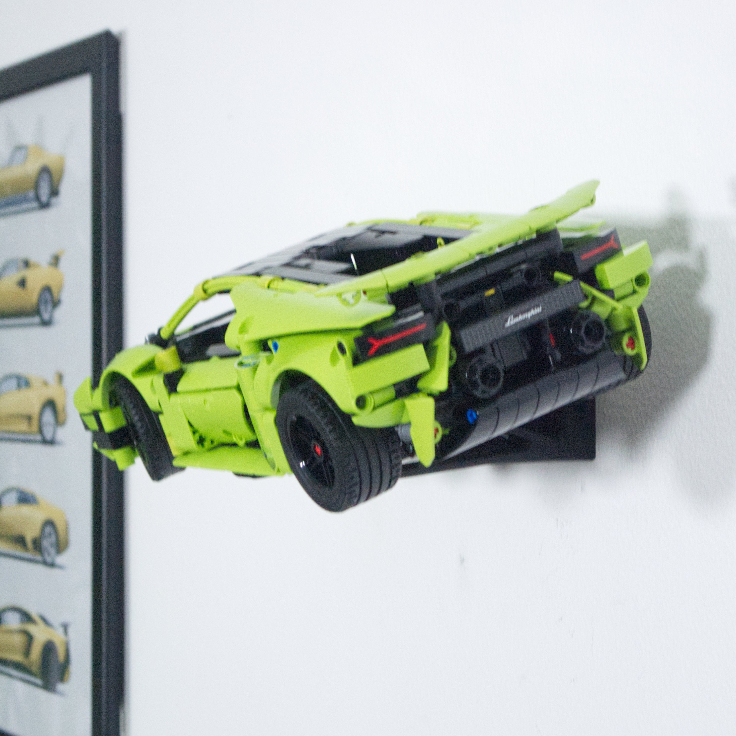 Visa din Technic Lamborghini Huracan horisontellt eller vertikalt med detta väggfäste. Designen gör det möjligt för bilen att vända åt vänster eller höger och säkerställer enkel borttagning. Fästet fästs på väggen med en enda skruv med en diameter på upp till 5 mm.