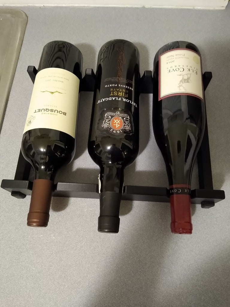Detta eleganta vinställ är utformat för att förvara upp till tre av dina favoritvinflaskor. Med plats för flaskor upp till 7,5 cm i diameter erbjuder det en praktisk och snygg lösning för både en liten vinsamling och som komplement till en större. Placera det på köksbänken, i baren eller på hyllan för att hålla dina viner organiserade och lättillgängliga, samtidigt som det ger en elegant touch till din inredning.